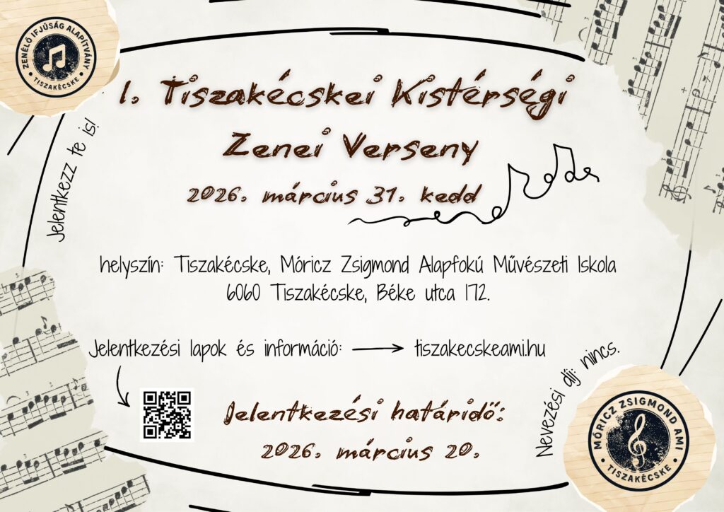 Kedves Szülők! Kedves Gyerekek! Indítjuk a jelentkezést a 2025/2026-os tanévre. Jelentkezési lapok már kitölthetők a Zeneiskolában minden hétköznap 8 és 17 között. Emellett nyílt napot is tartunk, ahol mindenki megismerkedhet az iskolában oktatott hangszerekkel! Időpont: 2025. 05. 23. 14:00-17:00 között.